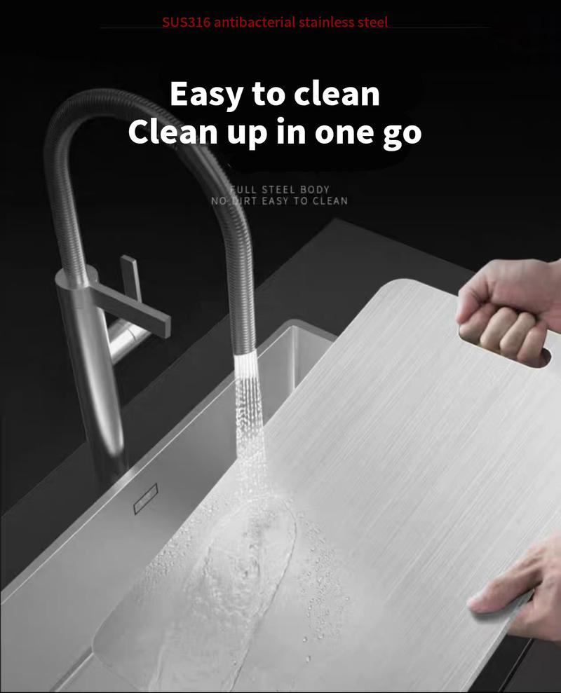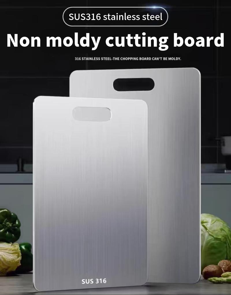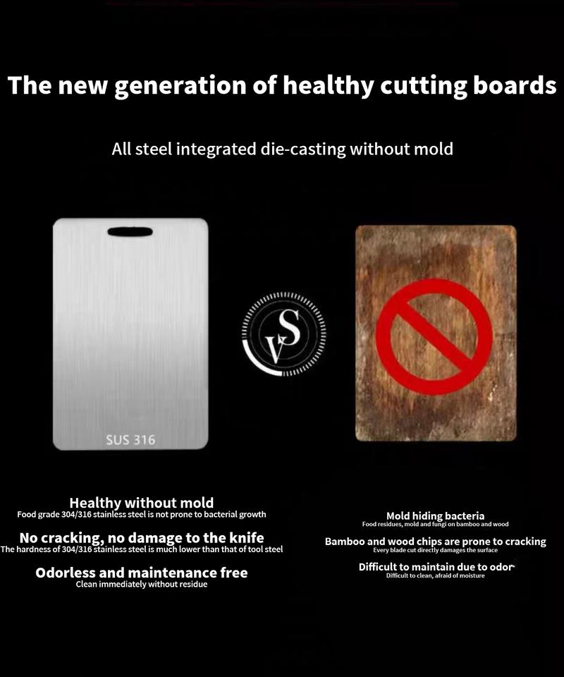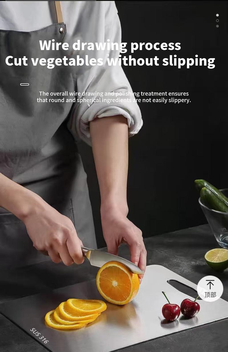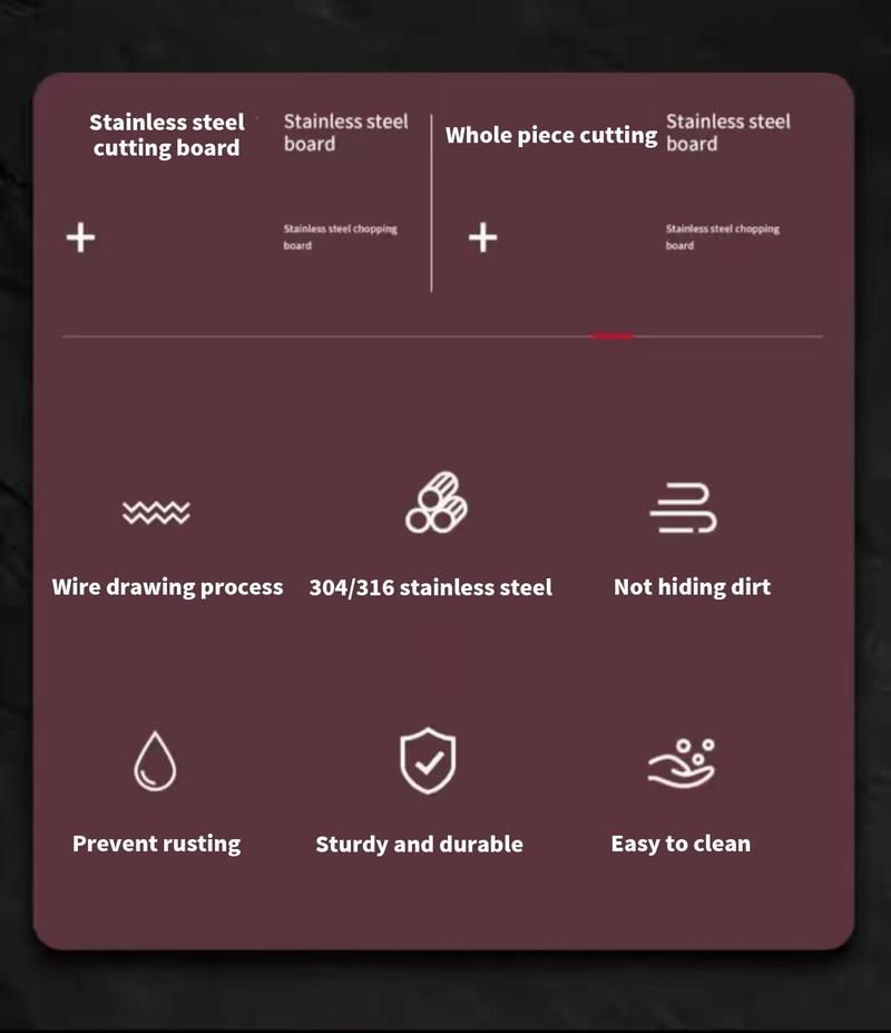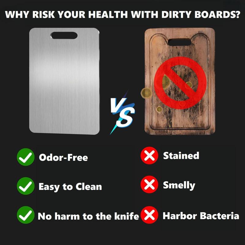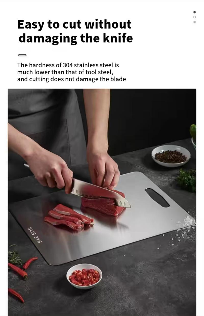 Knife-Friendly & Durable Engineered with food-grade, scratch-resistant steel that protects your knives while lasting longer than wood or plastic boards. It’s rustproof, BPA-free, and built to handle daily use.